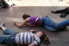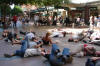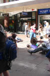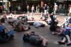 The disperse was quick. This, according to post mob chat, was a good thing, as some mobbers had decided to “Die” on the hot bricks. (Ouch! It was 38 degrees in town. You could cook a cockroach on those pavers!)