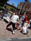 So, how did all of this go down? Jason wrote and suggested that two mob reps ask a random tourist to take a photo of them, then the rest of the mob lunge in around them as they pose for the shot. Fantastic idea, we thought, so this was how we started it off. The look the guy holding the camera gave us, as he tried to work out exactly why we had set him up, and what we were all about, was, as the catch cry goes, “Priceless.”
