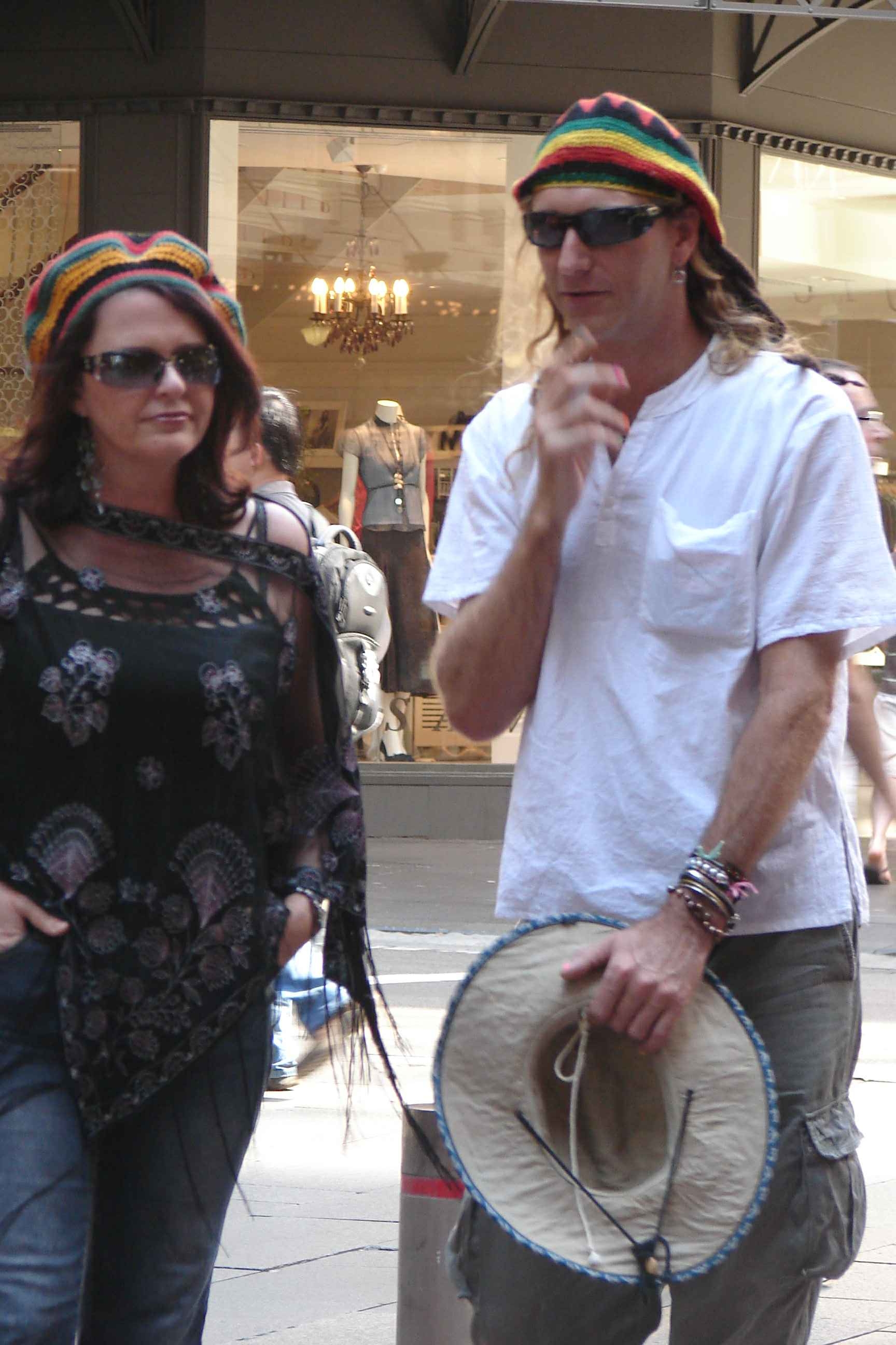 At 2:03pm, The Mob reps will appear wearing a Rastafarian hat. They will pause for a few moments, to give you time to get near by, and then they will begin to wander down the mall.
