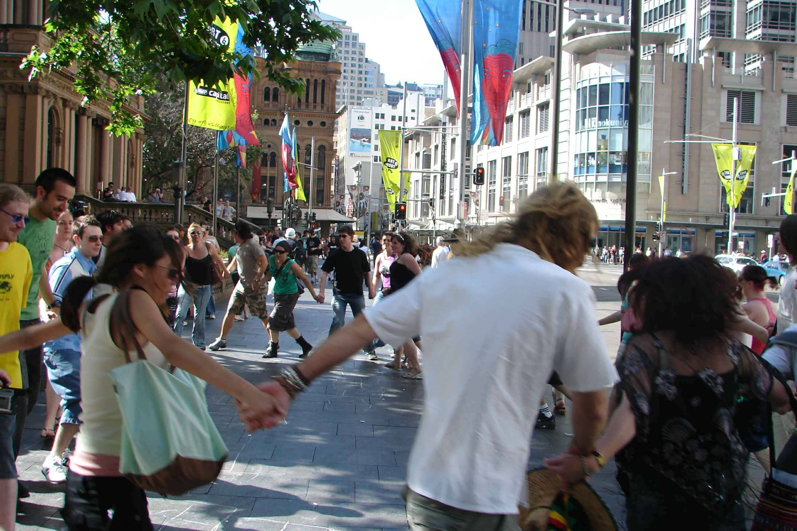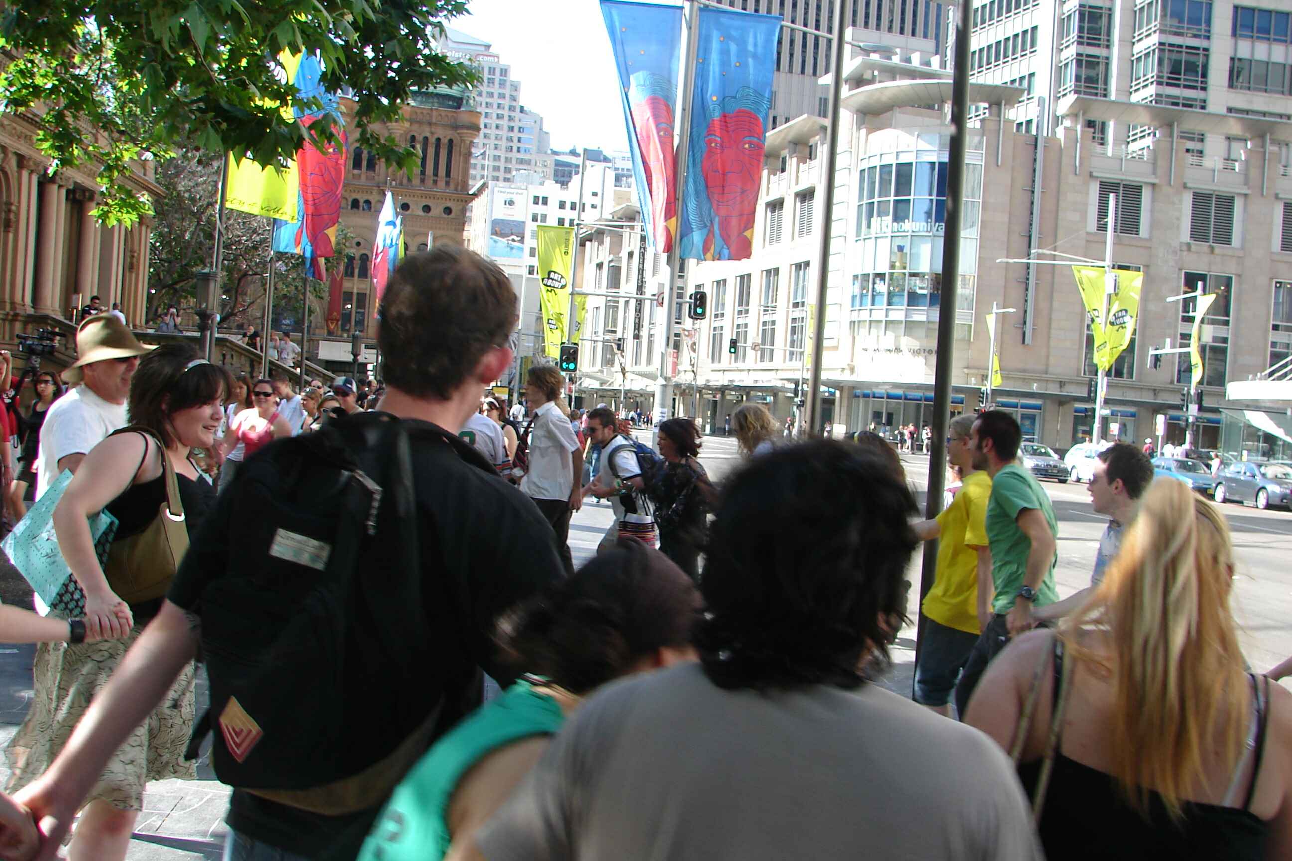 Make your way to Pitt Street Mall. By 2:00pm you will be loitering around the Market Street End of Pitt Street Mall.