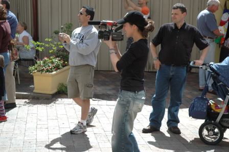 The reps will meet up at approximately 1.31 in the square. They will suddenly notice something in the sky. Very large, invisible alien ships are overhead! LOTS of them! The reps will cry “OH MY GOD” and possibly jabber incoherently, pointing skyward. (This is your cue to look up and notice these ships too, join in the excitement! Your best acting capabilities are called for!) The reps will bellow at their companion, “The CAMERA! GRAB THE CAMERA!”