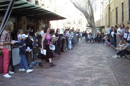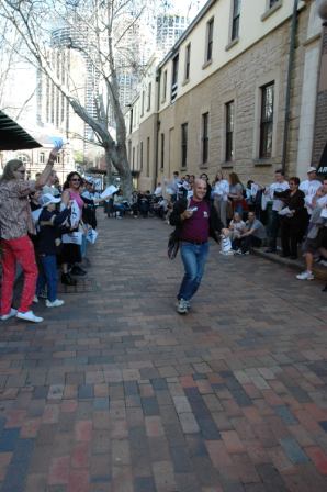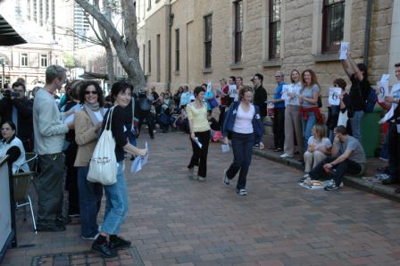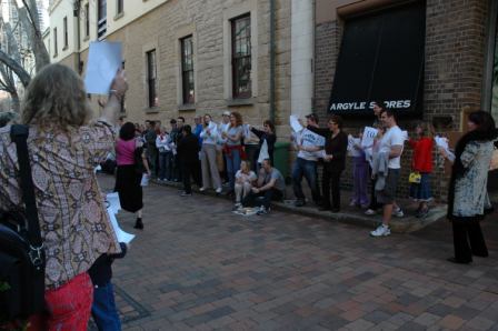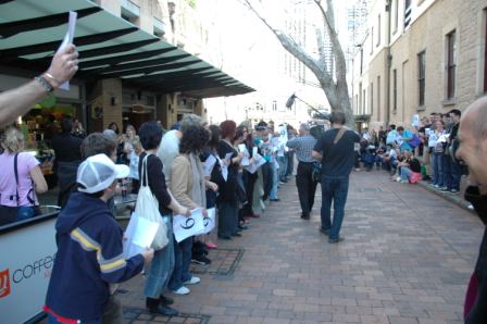 So, then it was on to Pitt Street Mall, which is rapidly becoming a favoured flashpoint. We can always count on a crowd, and there are plenty of exits to enable a smooth disperse.
