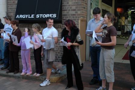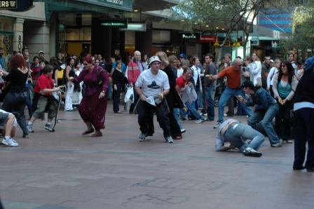 The first flashmob was a bit of a surprise, in that no bugger was prepared to run the gauntlet of our